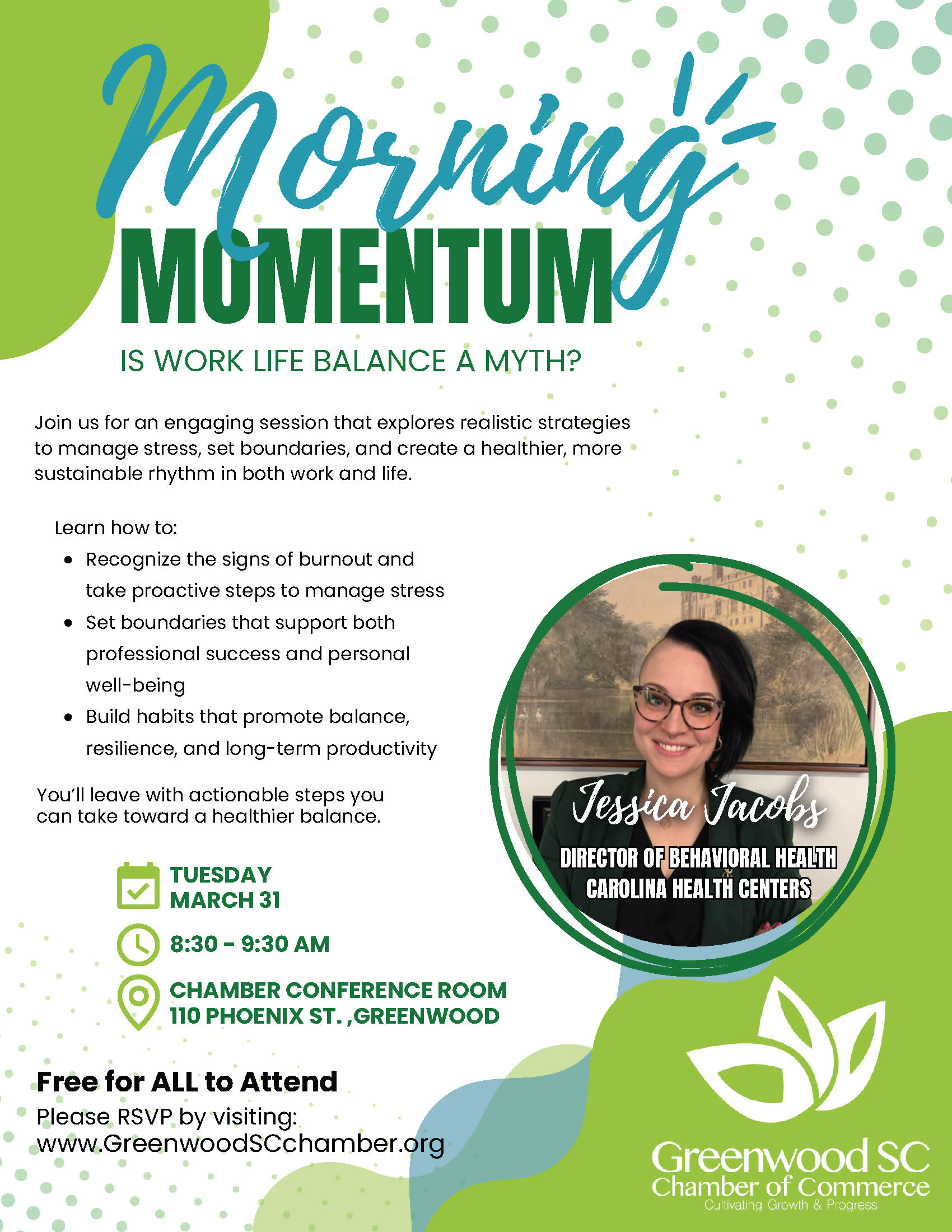 Work/Life Balance - Presenter, Jessica Jacobs, Director of Behavioral Health (Carolina Health Centers)