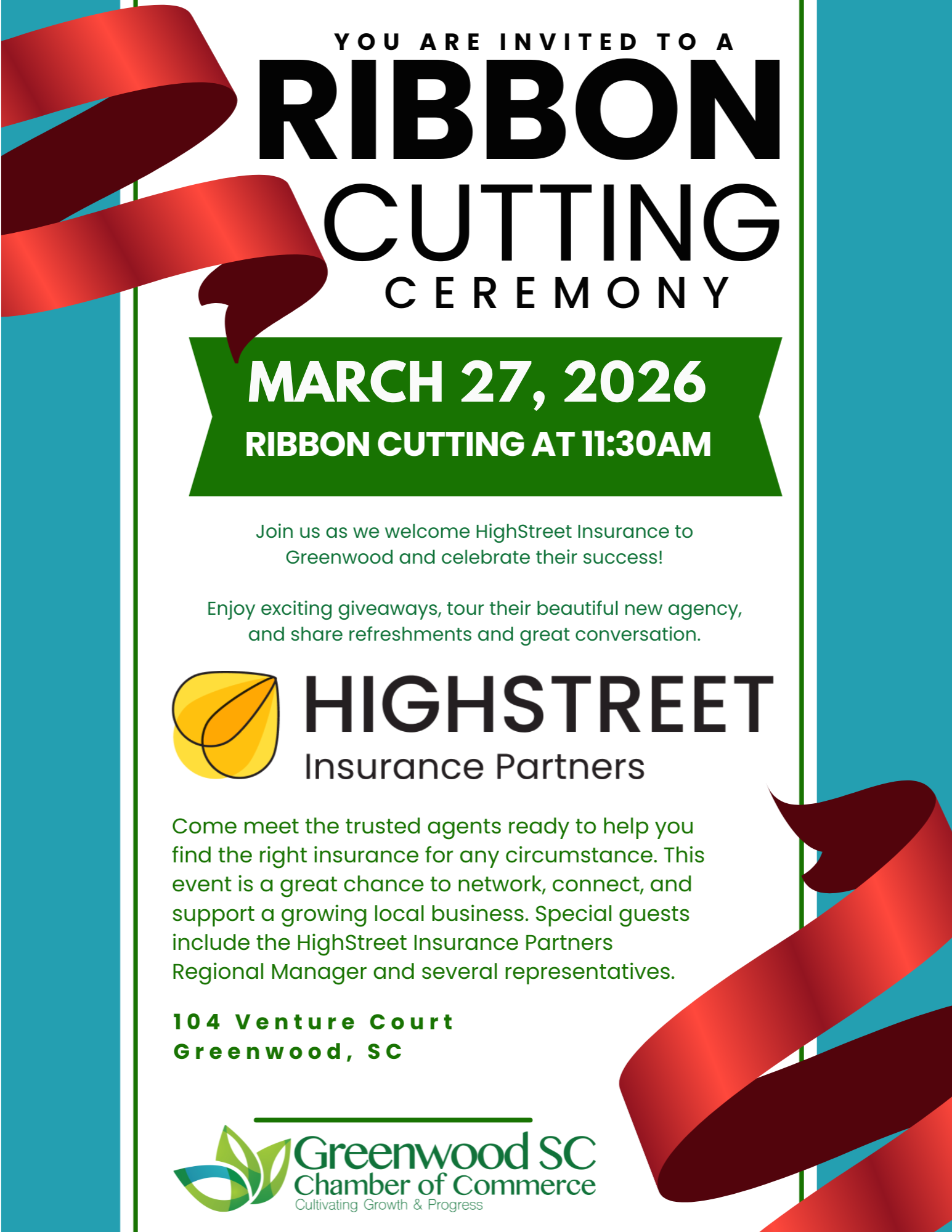 Let’s come together to welcome Highstreet Insurance to Greenwood and celebrate their success!