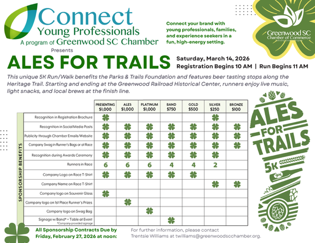 To Run - Register here: https://runsignup.com/Race/SC/Greenwood/2020AlesforTrails5k