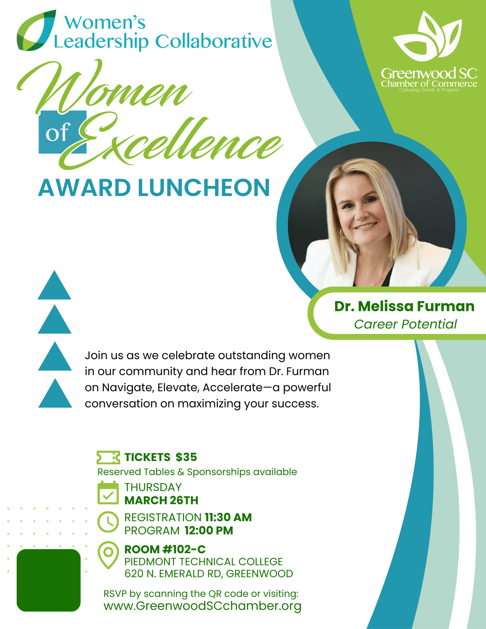 The Women’s Leadership Collaborative (WLC) of Greenwood, SC is pleased to announce the upcoming Women of Excellence Awards Luncheon. These prestigious awards celebrate and honor the unique leadership influence of women in our local community.