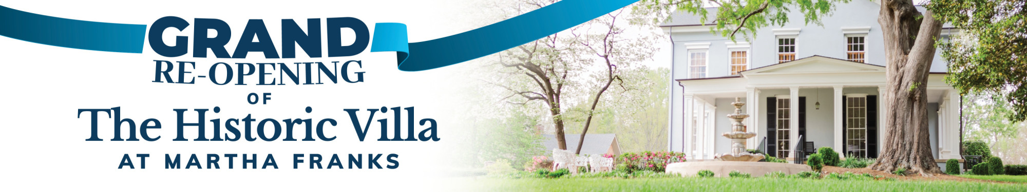 Please join us on Monday, May 19th, at Martha Franks Retirement Community for a ribbon cutting and reception as we celebrate the re-opening of our Historic Villa, which is now available to the public as a rental venue for meetings, parties, weddings, etc. For rental inquiries, please call 864-200-5114 or email marthafranksvilla@scbma.com