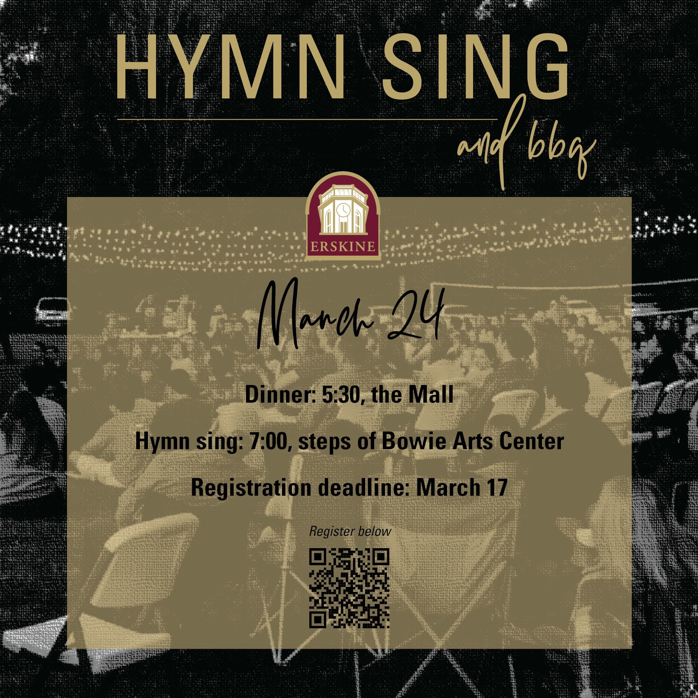 Free admission, but register by March 17 at https://www.erskine.edu/hymn-sing-form/ or call 864-379-8838
