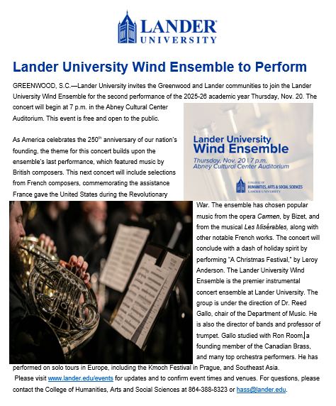 Media Contact: Armani Canty Office of University Marketing and Communications gduncan@lander.edu | 864-388-8720 320 Stanley Ave., Greenwood, SC 29649 |